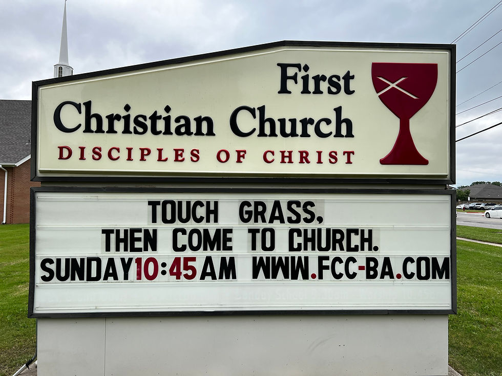 I haven’t done the research, but I’m fairly confident that no one has ever come to faith in Christ because of a church marquee sign. At best, marquee signs help a church become visible in its community. At worst, they become part of the background noise, competing with fast-food logos, traffic lights, and, let’s be honest, the phones in most drivers’ hands. Recently, I asked one of our elders to put a message on the sign facing the crosswalk where Sequoyah Middle School students pass every afternoon: “Touch Grass, Then Come to Church.” His response, understandably, was something like, “What in the world does that even mean?” “Touch grass” is today’s shorthand for “step away from the screen and reconnect with the real world.” It’s the 2020s version of “vibe check,” or “get real,” or “take a chill pill,” or “mellow out,” depending on what decade you grew up in.